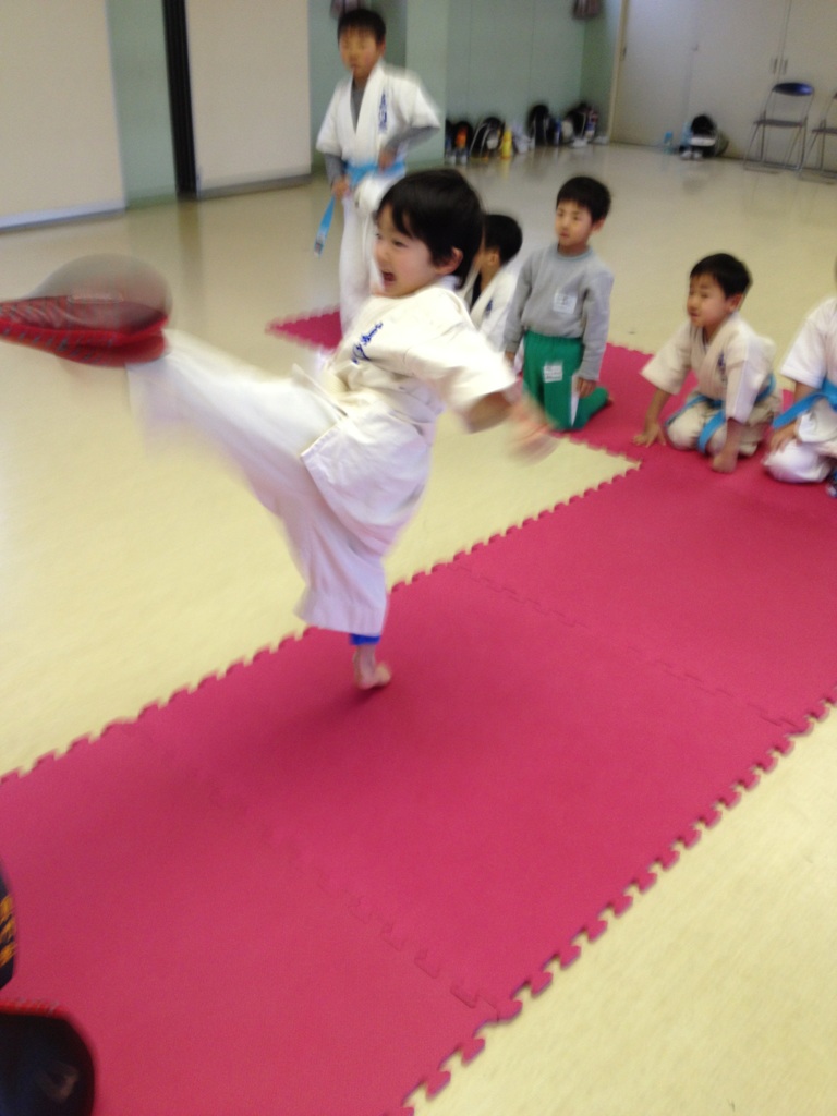 今日の練習はハンドミットを使って狙った所にしっかり蹴れる練習をしてみました(^-^)/